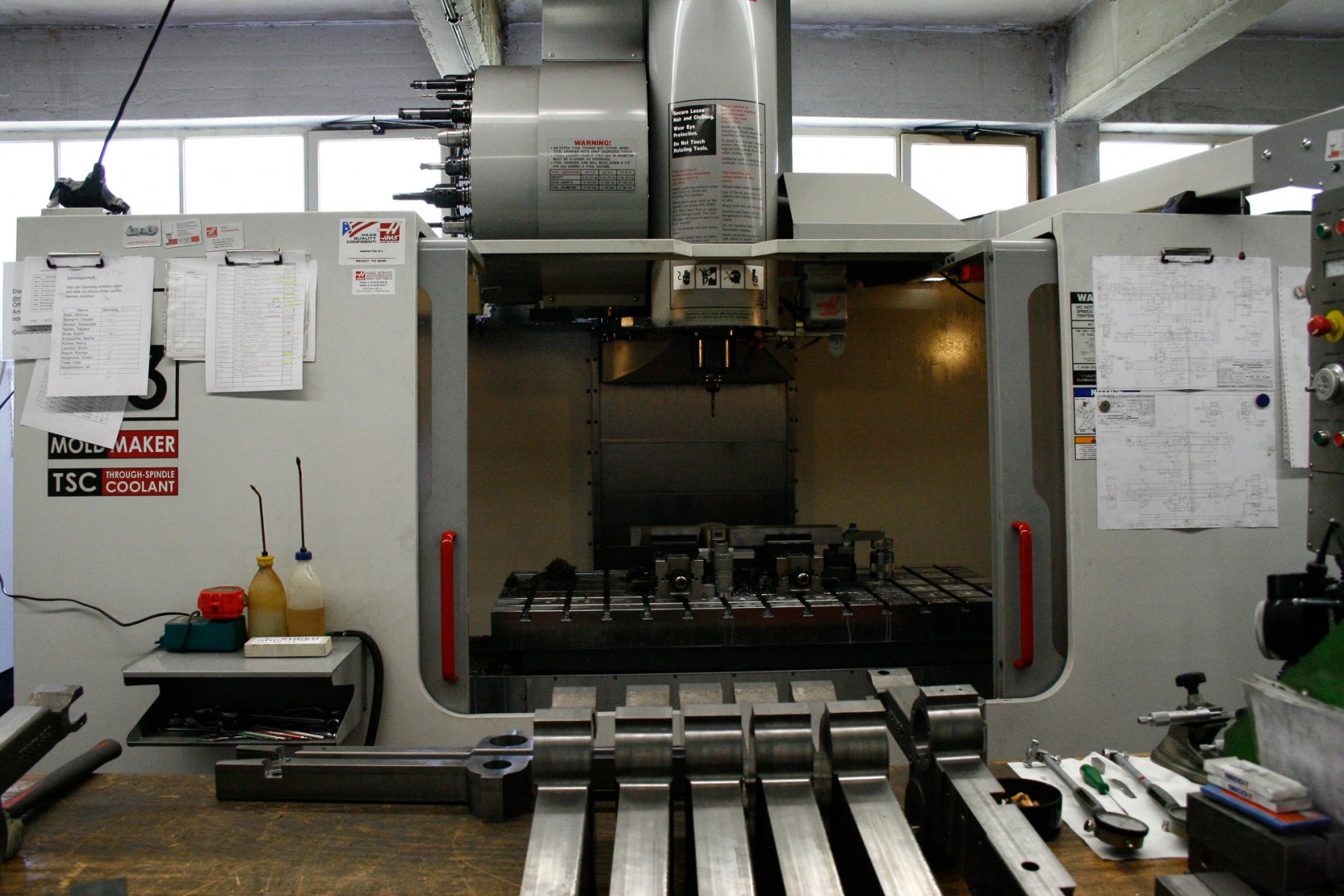 Durch die massiven Bauweisen der 5-Achs-Fräsen, die bis zu 20 Tonnen wiegen können, ist CNC-Bearbeitung Jürgen Buss GmbH in Heilbronn, in der Lage schwierige und komplexe Teile mit hoher Genauigkeit zu bearbeiten. Eine Garantie der Maßeinhaltung im hundertstel Bereich ist kein Problem.